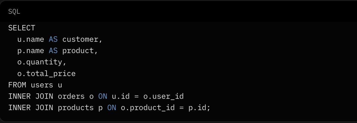 Once you're comfortable with INNER JOIN, LEFT JOIN will feel natural (coming in the next article!).